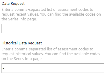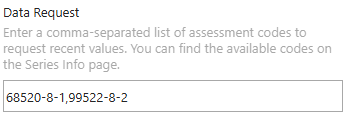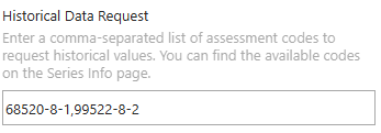 1. In the Historical Data Request parameter, enter a comma-separated list of assessment codes to retrieve the full history of data.