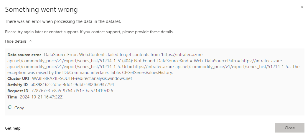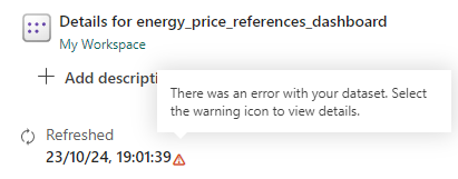 If there is anything wrong with the request, a warning symbol will appear next to the date and time of the last attempt to refresh the dataset.