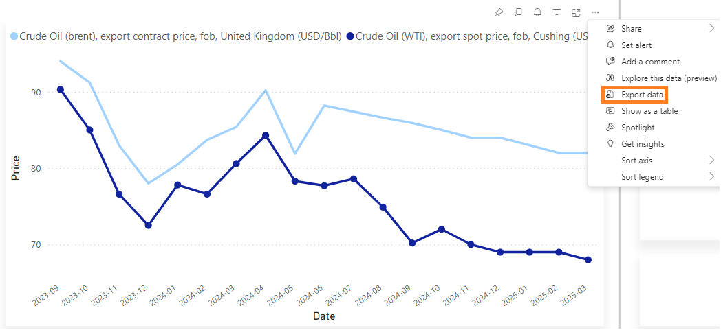 1. On the upper-right corner of the graph, click on the three dots and select Export data.
