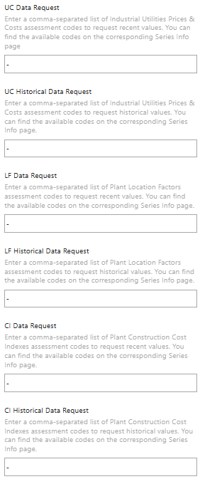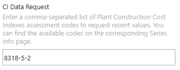 - CI Data Request accepts codes from Plant Construction Cost Indexes only.