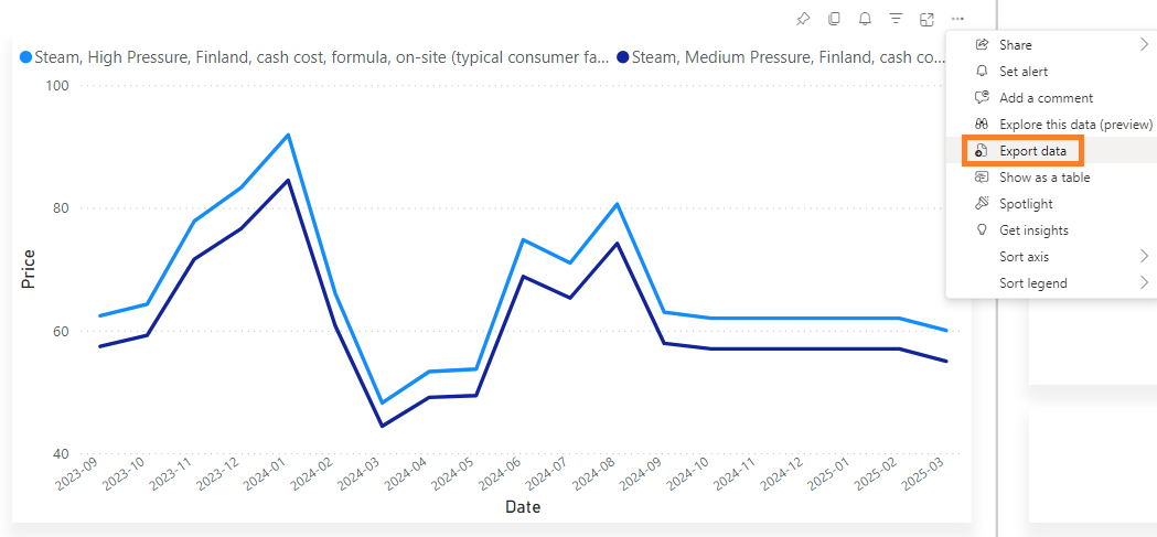 - On the upper-right corner of the graph, click on the three dots and select Export data.