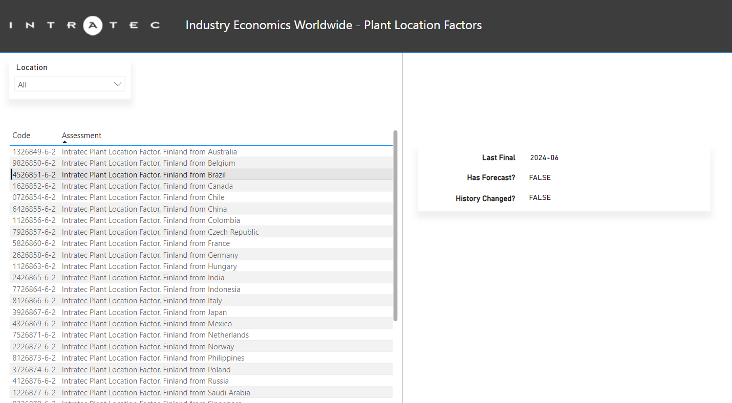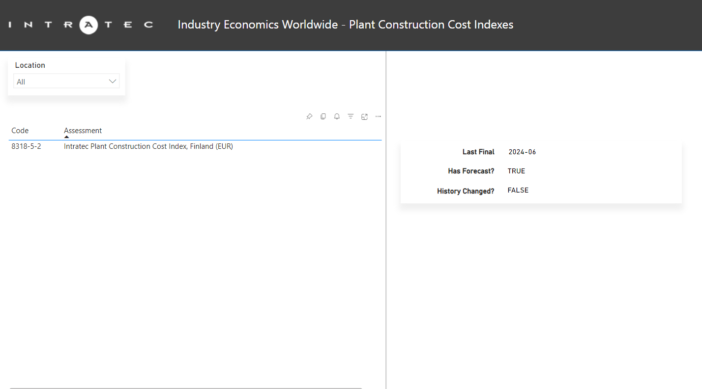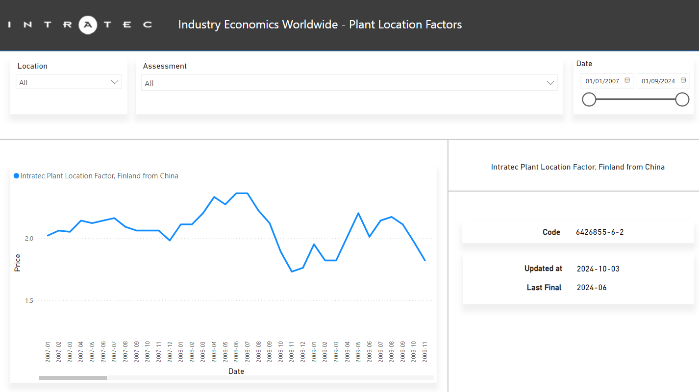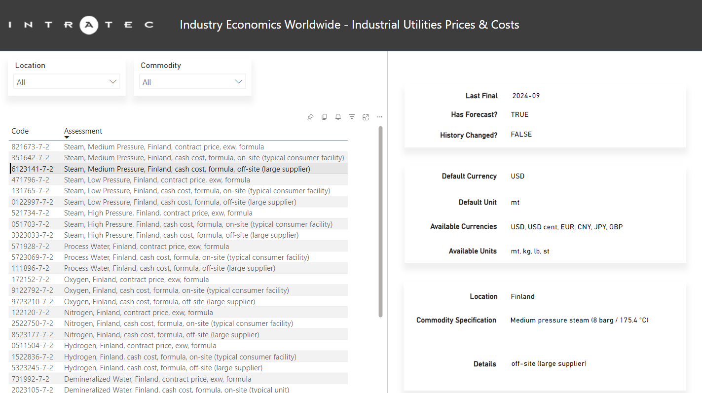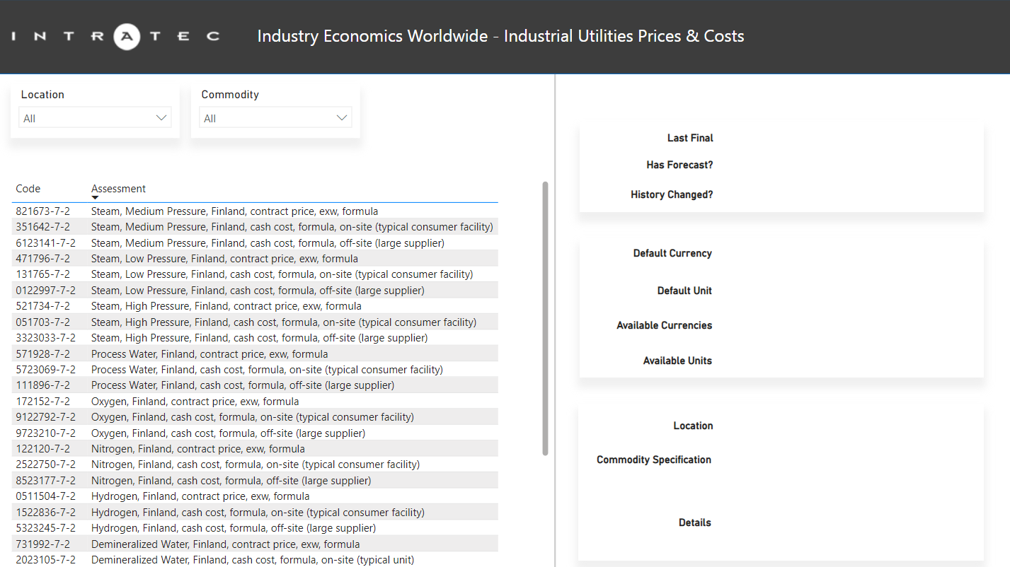 The Intratec Industry Economics Worldwide Power BI Dashboard is a pre-configured, open-source project file (.pbix) that provides straightforward access to Intratec Industry Economics Worldwide data. It can be used as a starting point for experienced users to develop more complex applications or as a ready-to-use simple dashboard for those in need of an easy way to access the data provided by Intratec.