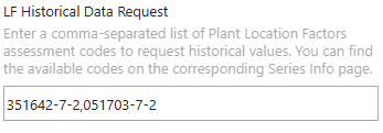 - In the Historical Data Request parameters, enter a comma-separated list of assessment codes to retrieve the historical data.