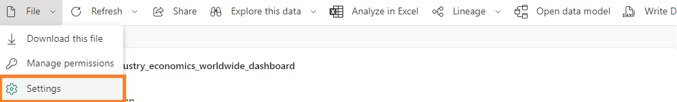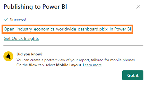 - Click on Open 'industry_economics_worldwide_dashboard.pbix' in Power BI to access it in the web browser.