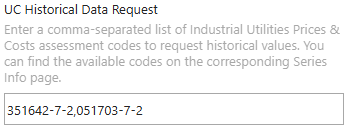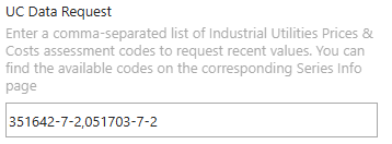 - UC Data Request accepts codes from Industrial Utilities Prices & Costs only.