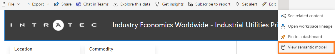 - With the dashboard open in the browser, click on the three dots next to Edit on the top ribbon and select View semantic model.