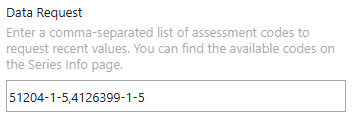 - In the Historical Data Request parameter, enter a comma-separated list of assessment codes to retrieve the full history of values.