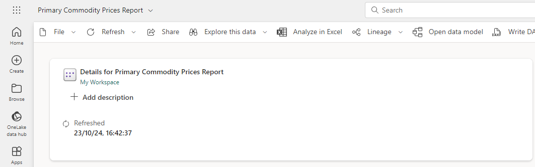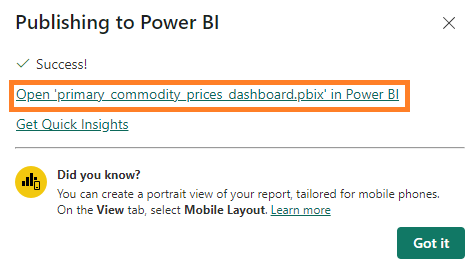 - Click on Open 'primary_commodity_prices_dashboard.pbix' in Power BI to access it in the web browser.