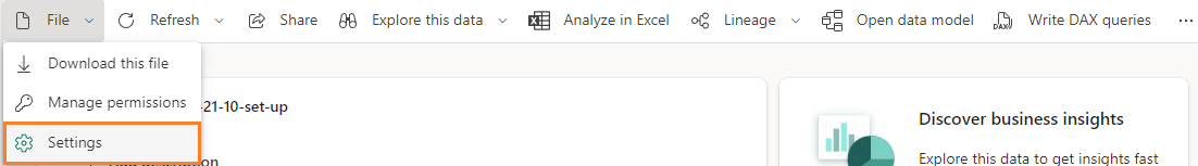 - To configure the access, click on the three dots next to Edit on the top ribbon and select View semantic model.