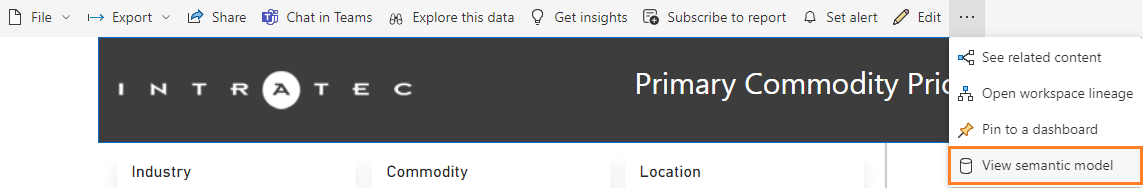 - With the dashboard open in the browser, click on the three dots next to Edit on the top ribbon and select View semantic model.